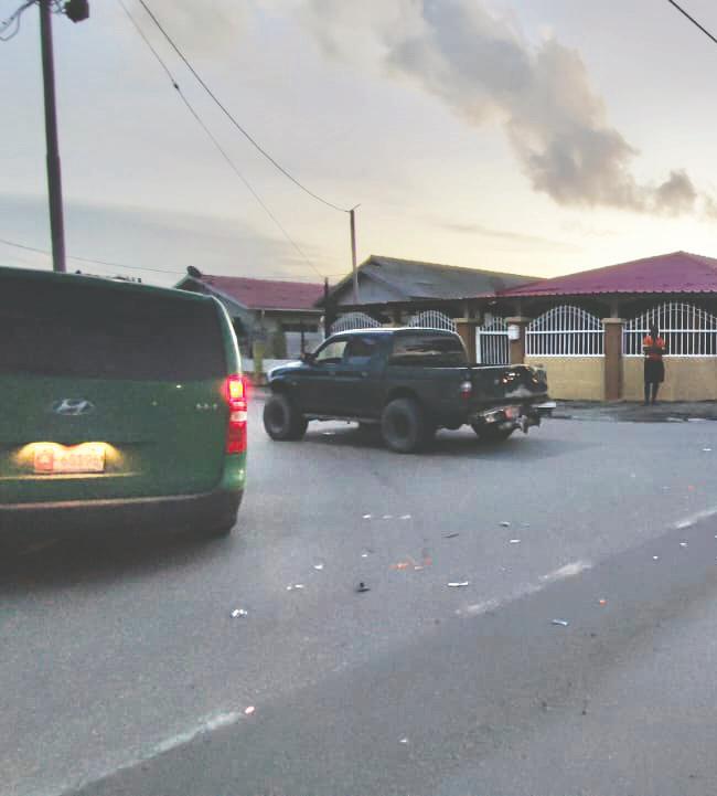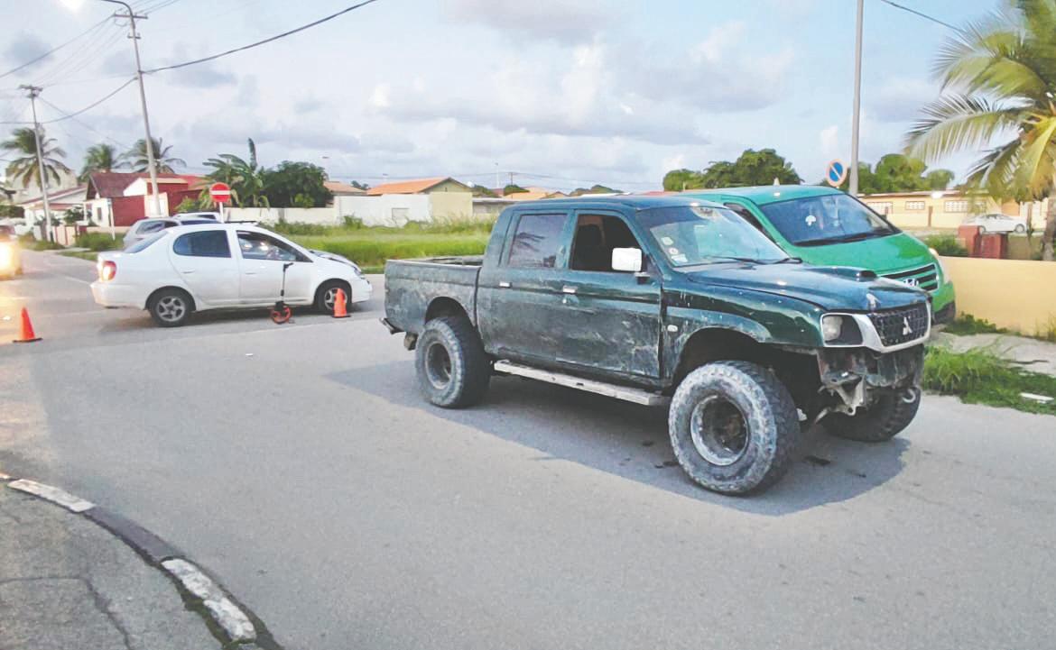 Aki e pickup lo a trot pa evita e impacto pero asina mes e auto a dal e parti patras lagand e auti cu basta sla.