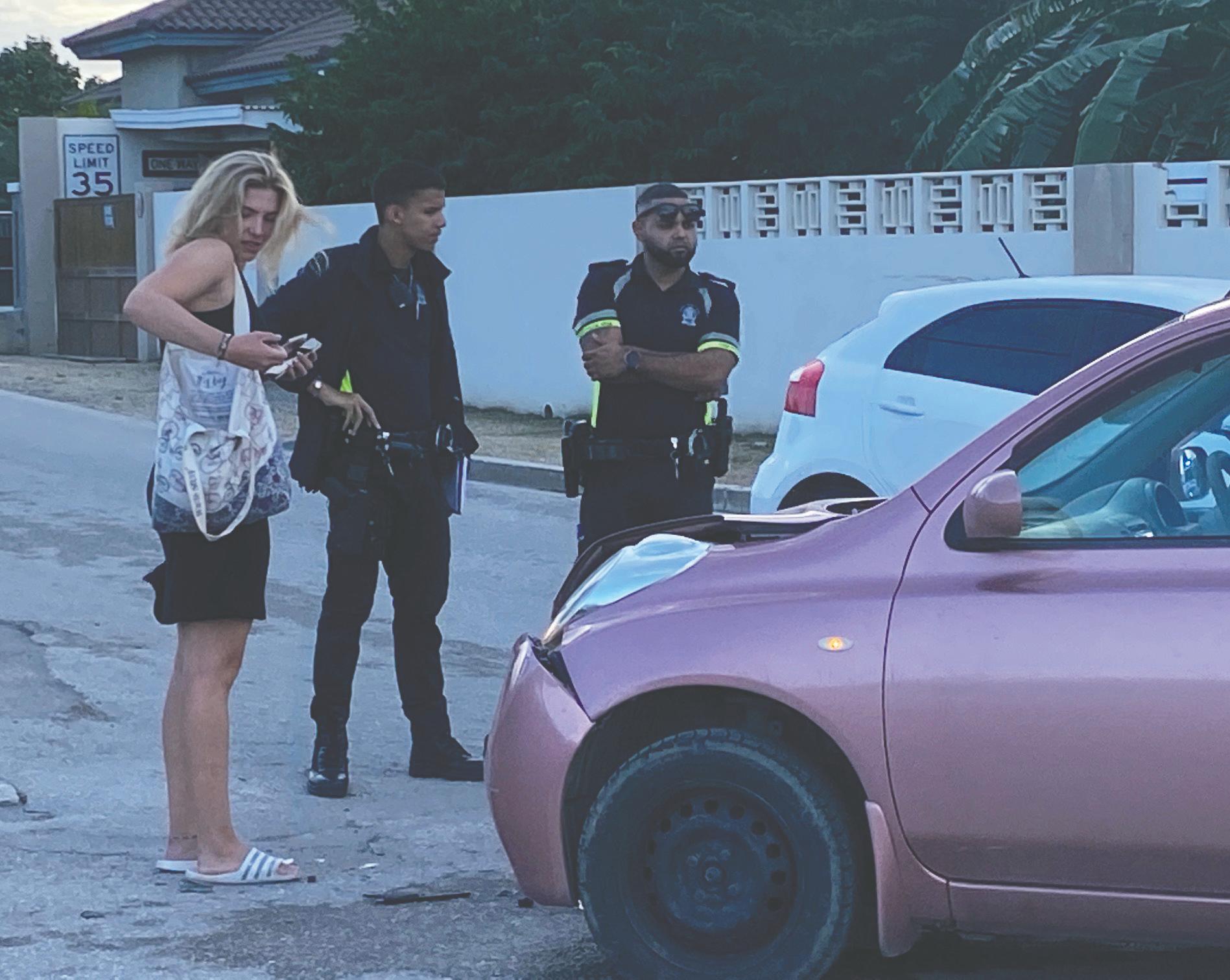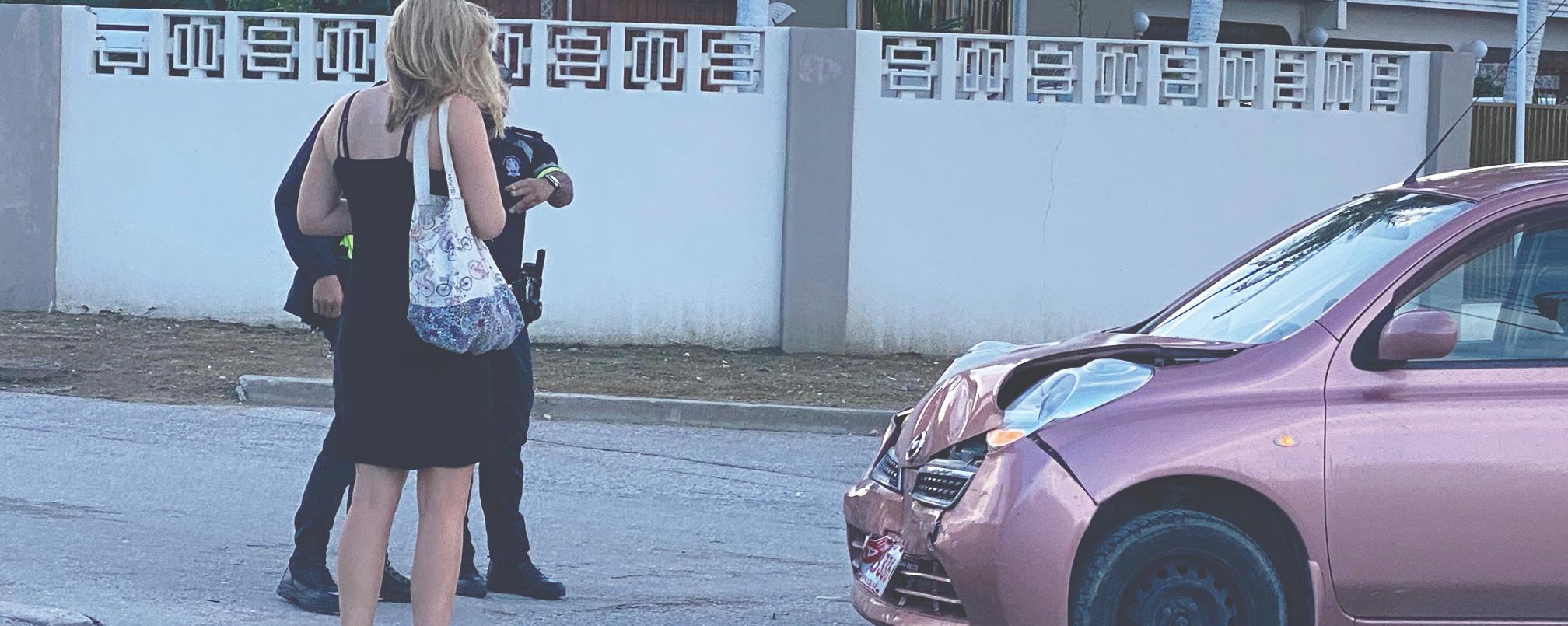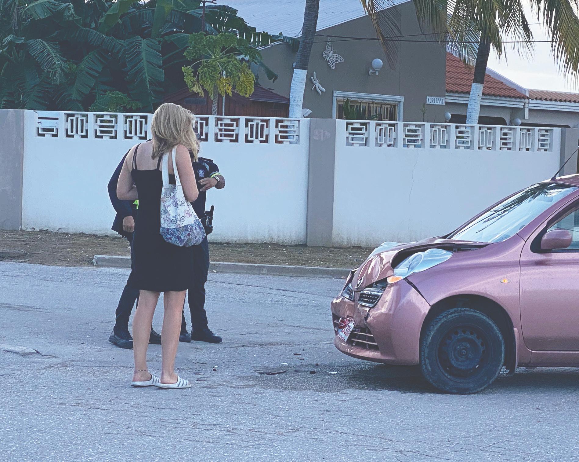Na yegada di e patruya a bin compronde cu aki ta trata di un accidente unda un dama turista coriendo cu un Nissan March di huur no a duna preferencia na trafico di man drechi riba e crusada igual y a bay dal un truck for di man drechi