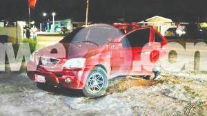 e auto pa asina por a saca e curpa sin bida di e chauffeur di e Baleno for di auto.