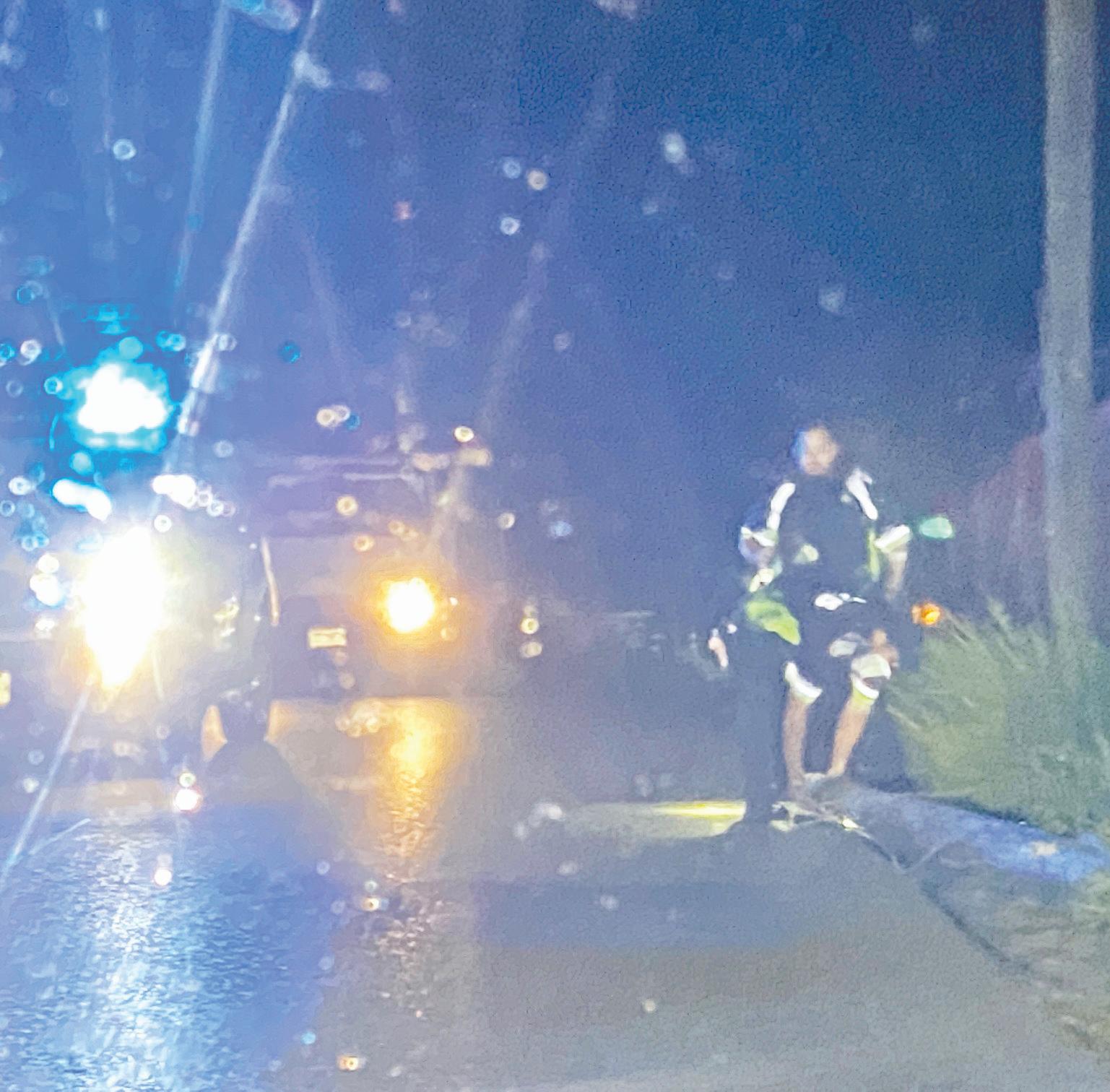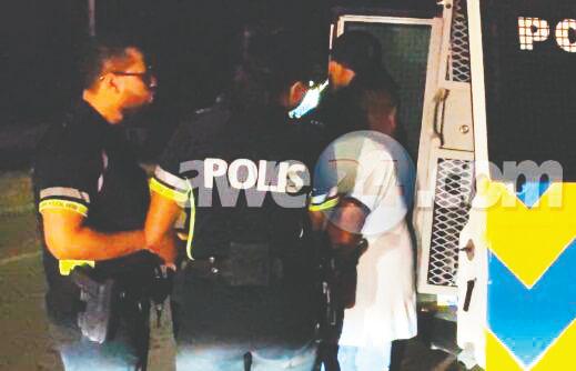 malo mes riba e caminda di Tanki Flip, mesora polis a para e auto. Ora a