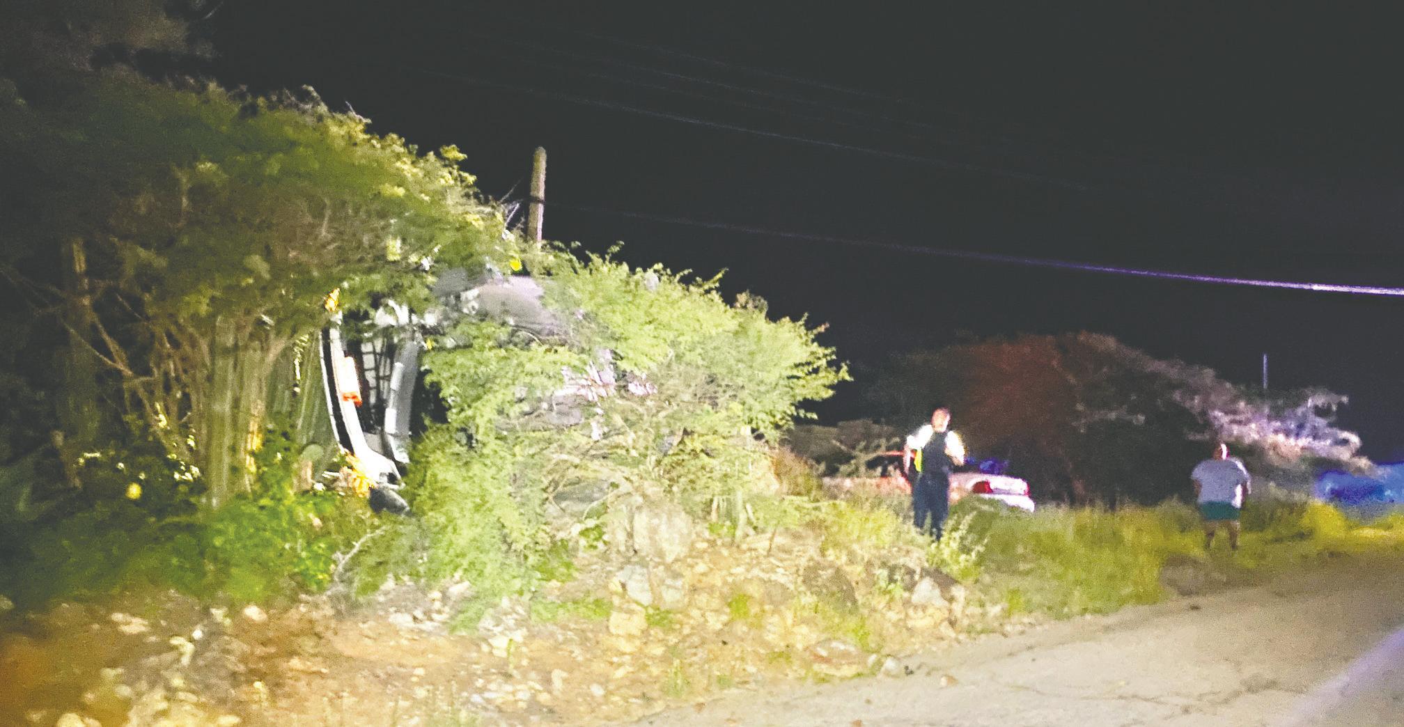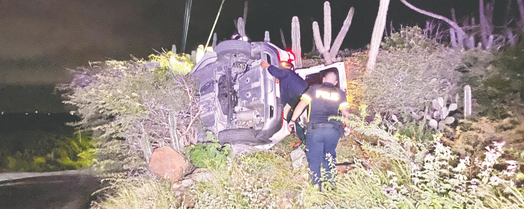 Na yegada di e patruya a bin compronde cu aki ta trata di un accidente unda cu e chauffeur di e Toyota pick-up double cab a perde control baha caminda ranca full e bor chi enseñalacion bolter dal riba un piedra grandi hala esaki y bay cay bek riba su wielnan. E chauffeur mes a bando na e sitio lagando e yabi den e vehiculo.