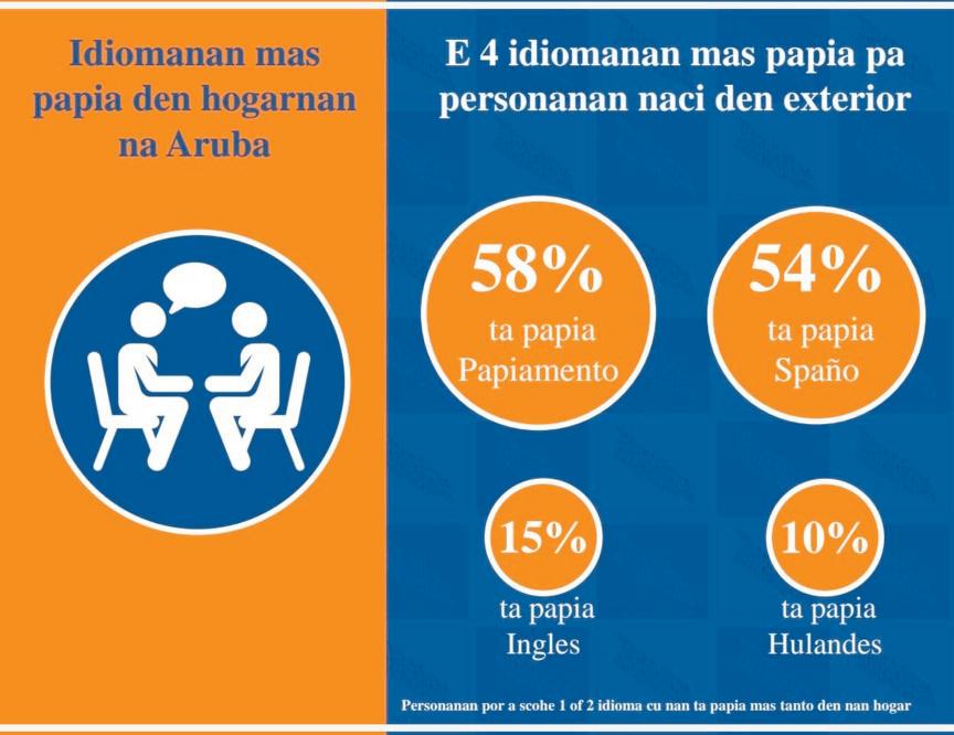 den e hogarnan na Aruba, 80% ta papia Papiamento. Mayoria persona cu no ta naci na Aruba, 58%, ta papia Papiamento na cas. E cifranan aki ta mustra cu Papiamento ta e idioma preferi pa nos comunica cu otro.