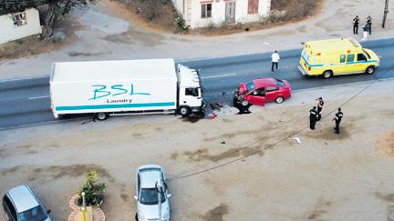 Diadomingo atardi a drenta informe di un accidente na e rotonde Sasaki, mesora a dirigi un patruya na e sitio.
