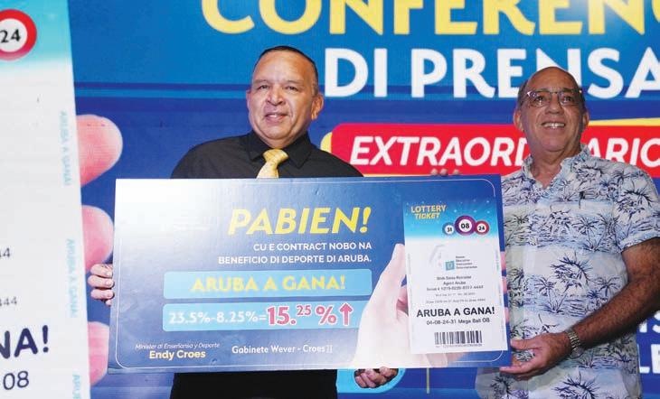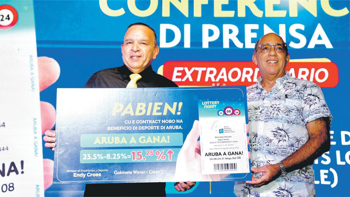 di garantia di CBN y Lotto mes a tuma over esaki. Por ultimo, ora tur esakinan a keda cla a palabra luna pasa cu CBN un ‘hand over date’ pa 1 di september 2024. Esaki a wordo anucia diasabra ultimo cu desde 1 di september oficialmente FLPD (Fundacion Lotto pa Deporte) ta bek den man di Aruba bou di un contract nobo, unda e logro mas grandi ta e reduccion di e ‘fee’ cu tabata bay Canada cual a baha di 23.5% pa 8.25%. E ‘fee’ di 8.25% ta unda el a cuminsa desde 1999. Pabien Aruba.