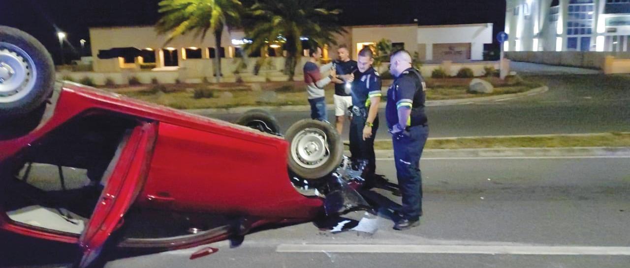 Diasabra madruga na altura di e hotzone banda di e highrise hotelnan polis ta nota un pick-up hera bin dal riba nan y a sali bay su tras. E pick-up a drenta e parkinglot di The Village unda eyden tin un otro patruya caba y polis eynan a purba par’e pero ela sigui e patruya cu tabata siguiendo e pick-up a nota un chance