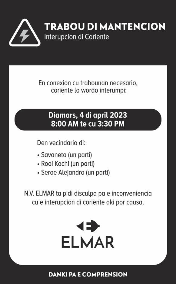 Pagina 28 Dialuna 3 April 2023 Brandweer 911 Polis 100 Polis Oranjestad 102 Polis San Nicolas 104 Polis Santa Cruz 105 Polis Shaba 107 Tiplijn 11141