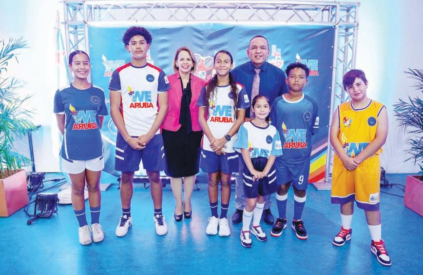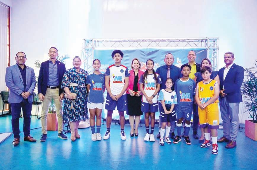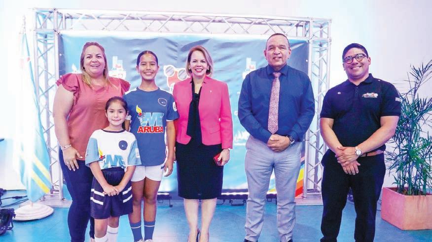 Aruba 2023. Presente na e ocasion special aki tabata: Prome Minister di Aruba sra. Evelyn WeverCroes, Parlamentarionan di Coalicion, directivanan di scol, instructor y docentenan di deporte y demas invitadonan.