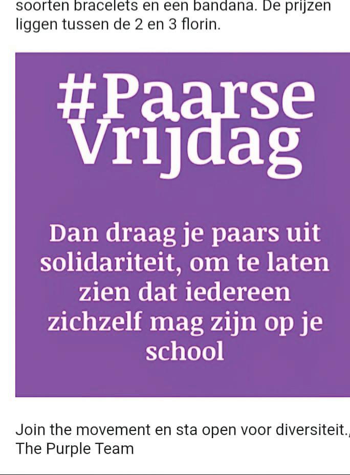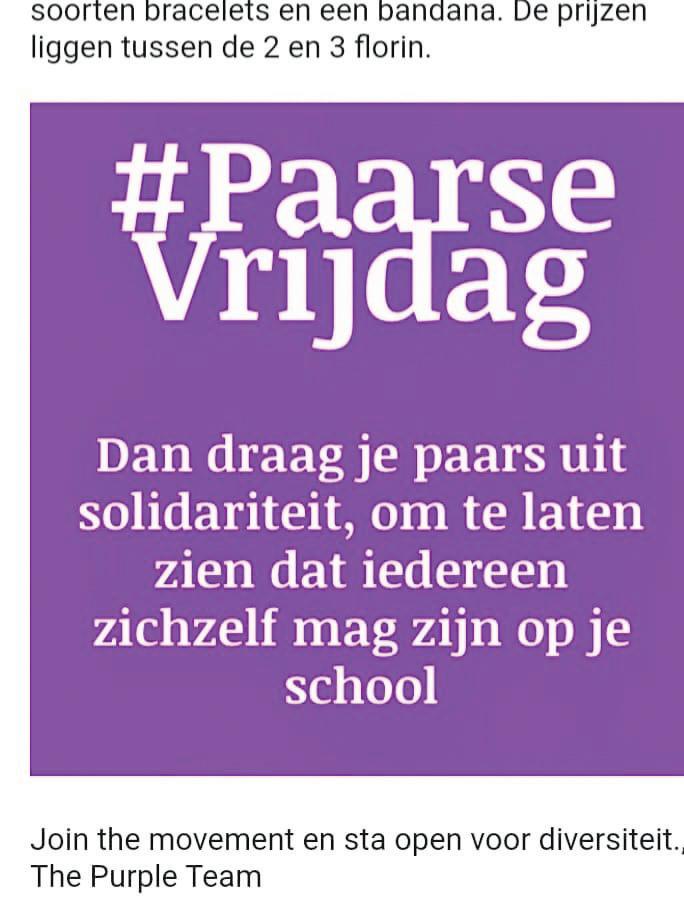 Solo di Pueblo a wordo aserca pa un grupo di mayornan sumamente rabia y hostina cu scol De Schakel. Esaki ta pa motibo cu diabierna siman pasa nan a organisa un “Paarse Dag” na scol, unda a obliga alumnonan bay bisti na color biña y peor ainda obliga tur mucha pa wak video homosexual.