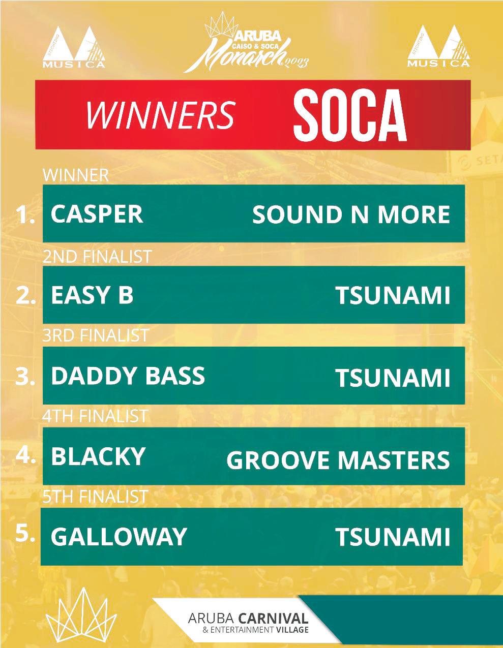 CONGRATS TO CAISO KING GALLOWAY JR & SOCA KING AND ROOKIE OF THE YEAR CASPER YOU BROUGHT IT THE JUDGES LOVED IT AND CHOSE YOU BOTH. MUCH RESPECT!
