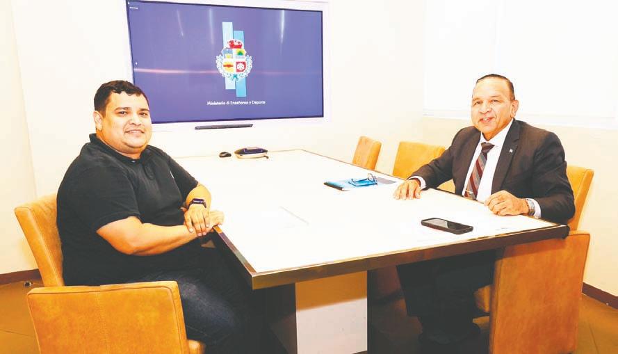 cu ta rigi pa Inspectie Onderwijs, Enseñansa Superior (Hoger Onderwijs) y Speciaal Onderwijs. Durante e reunion Sr. de Vries a presenta tur e trabounan cu e ta haciendo desde april di aña 2022, pa asina Minister Endy Croes por a haya un bista di esaki.