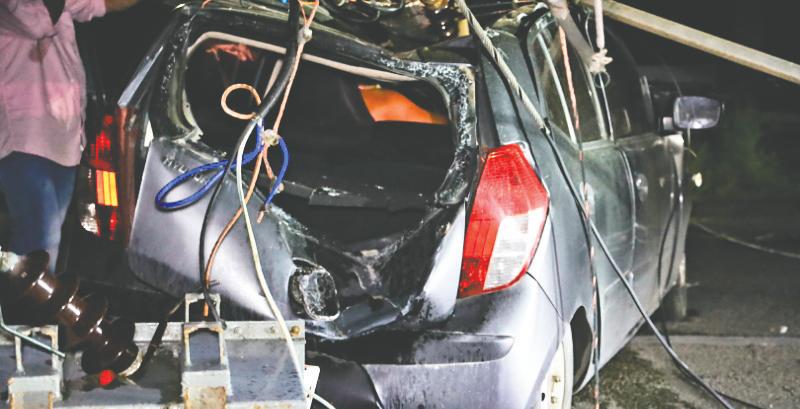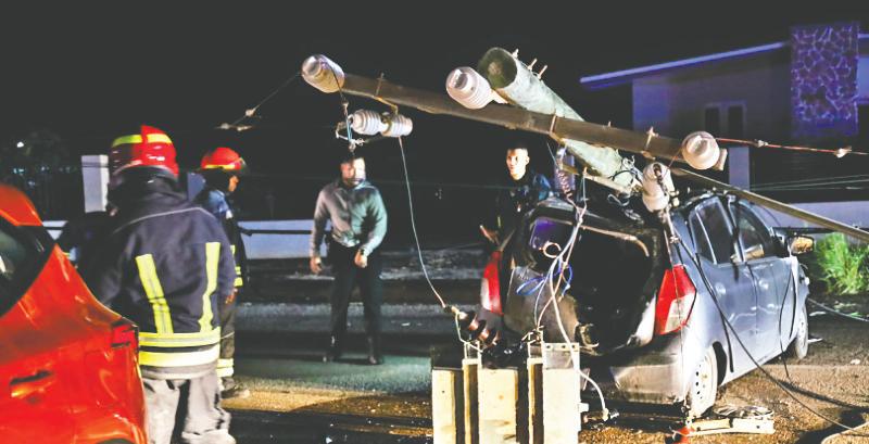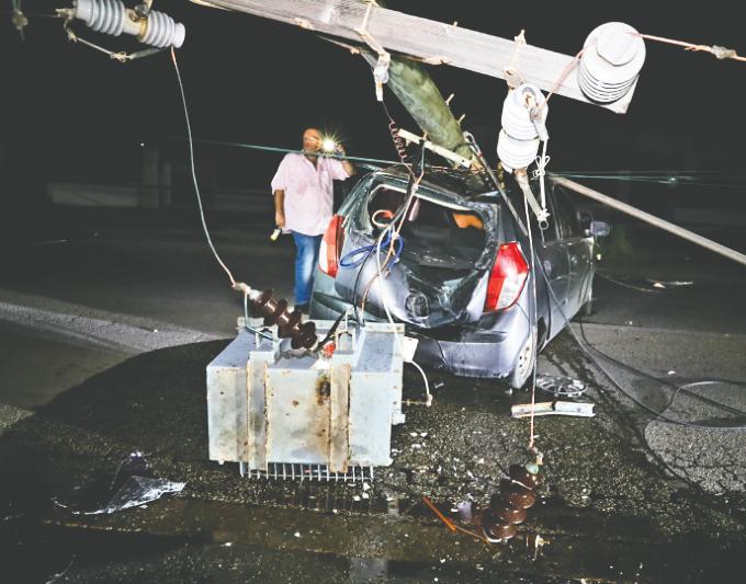 luz, rancando esaki pa despues e palo di luz cay ariba e auto causando un daño enorme. Pues e vehiculo aki a bay dal strit contra e palo di luz.