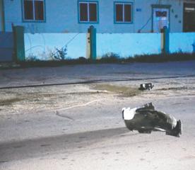 E brommer na su turno no a por a evita e impacto tampoco y ta dal tras di e auto kibrando e back shield cu su helm, y aki ta unda e la corta bou su garganta.