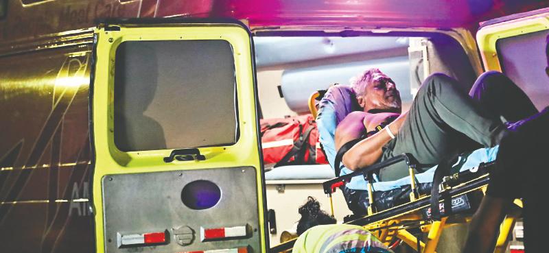 Ambulance a transporta e homber pa hospital.