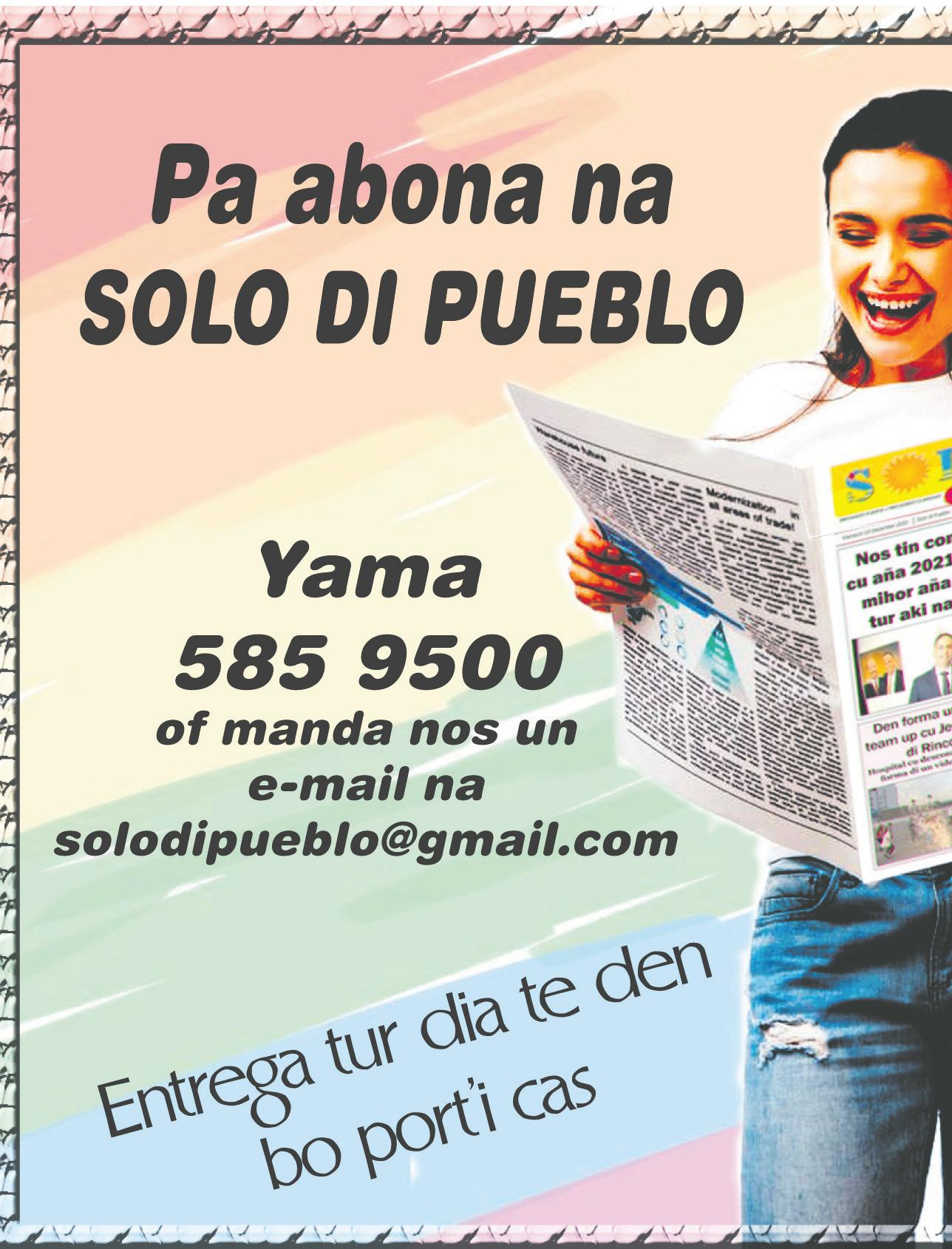 913 òf via whatsapp 510 0913. E numbernan akí ta alkansabel di dia i anochi.