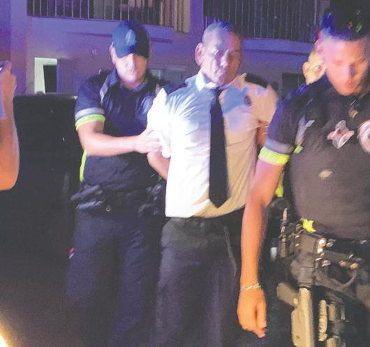 E homber tabata tin su uniform di trabou bisti. E la wordo deteni y transporta pa warda di polis.