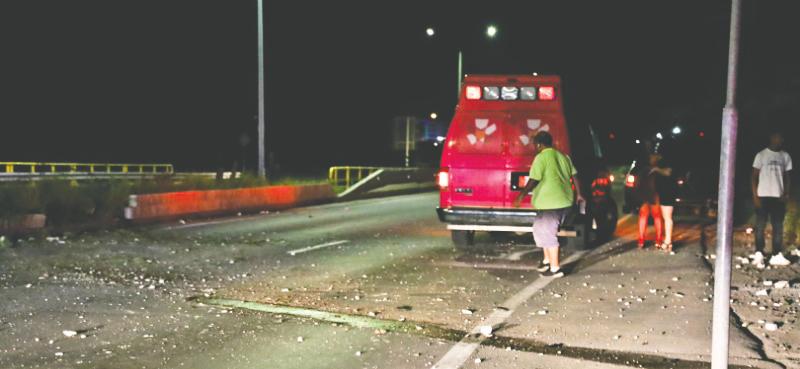 di ambulance y polis. Riba e caminda a keda un cantidad di pida pida blokie gespart. Un poco su tras tabata biniendo un van blanco y e chauffeur no a mira na tempo e blokienan riba caminda y a pasa ribanan, kibrando un tire di su auto.