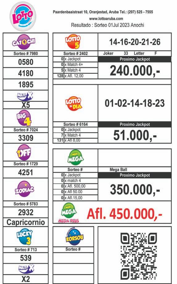 Premionan ta wordo anuncia dia 15 di Augustus 2023. Tira e coupon aki den buzon na oficina di Solo di Pueblo na Sta Cruz 110, solamente entre 2or di atardi cu 4or di atardi.
