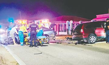 Na yegada di dos ambulance, memey di caminda nan ta topa cu un Toyota Yaris y un Honda CRV, ambos bastante destrui.