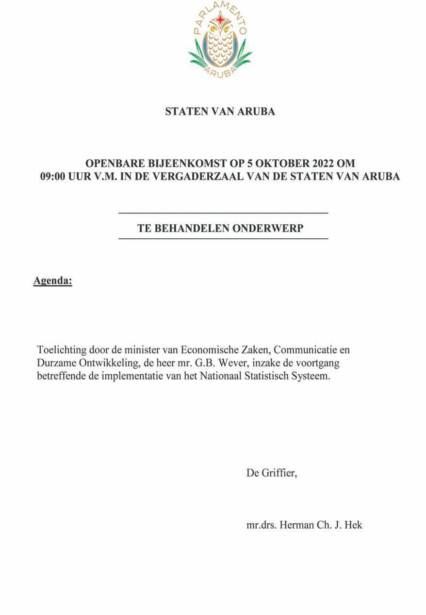 sosode den presencia di nos Minister-President sra. Evelyn Wever-Croes, Minister Dangui Oduber, demas coleganan Minister,