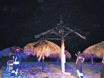 Eagle Beach - Diabierna anochi Brandweer ta wordo notifica di un palapa na candela, tegenover di La
