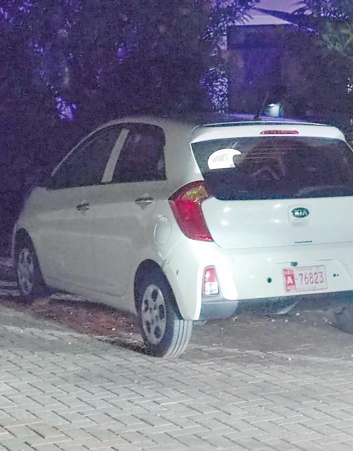 Diabierna madruga a drenta informe di cu un chauffeur a sali burachi for di un hotel den Oranjestad den un auto Kia color