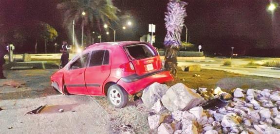 E vehiculo aki tabata bini for di Tanki Flip yega e rotonde sin a brake dal na e acera perde control bolter y bay pega na e barancanan riba parkinglot di ELMAR.