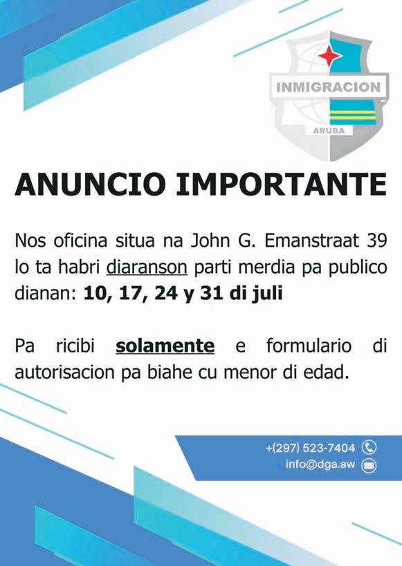 Oranjestad, Aruba: SKOA ta informa mayornan cu den e ultimo siman di scol entre 8 cu 12 di juli, por haci peticion pa cambia nan yiu(nan) di scol.