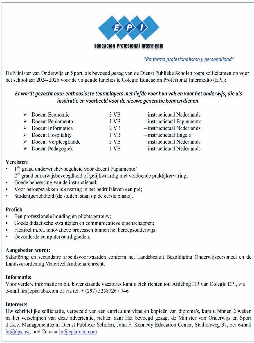 scol lo wordo procesa digitalmente via nos systema central di SAS. Pa haci e peticion oficial di cambio di scol mayornan mester aserca e cabesante di scol entre 8 - 12 di Juli 2024. Tur peticion lo wordo procesa segun e secuencia di entrega, pues mas trempan haci e peticion mas trempan esaki lo wordo procesa. Importante pa tene na cuenta cu