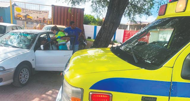 Polis di trafico a presenta hopi lihe na e sitio y a pidi pa presencia di ambulance pa trata un persona di edad cu tabata den e Mitsubishi, e persona tabata levemente herida y a wordo trata na e sitio pa e paramediconan di ambulance.