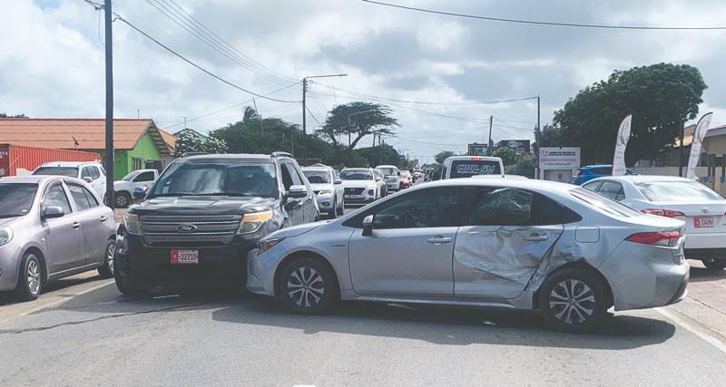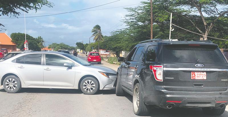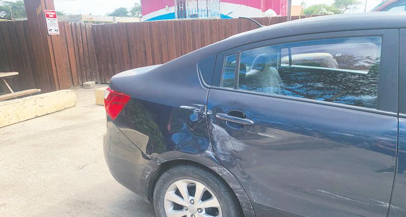 Chauffeur di un Mitsubishi a reverse y a dal contra un Kia Rio cu tabata pasando, pa bay e otro banda di caminda y e esaki a pasa a dal contra un Suzuki Vitara cu tabata staciona.