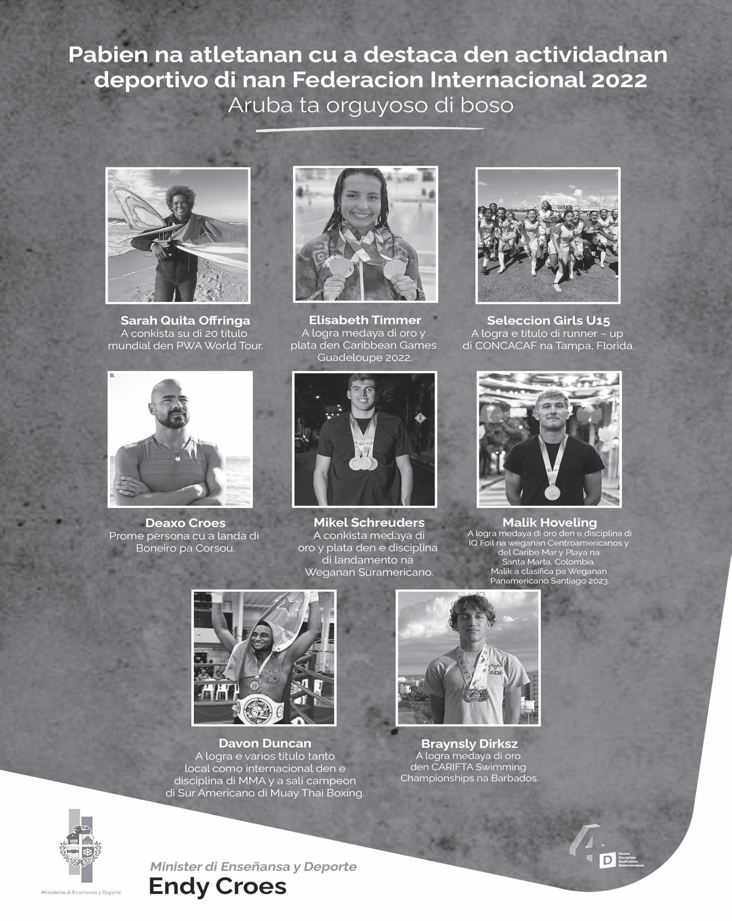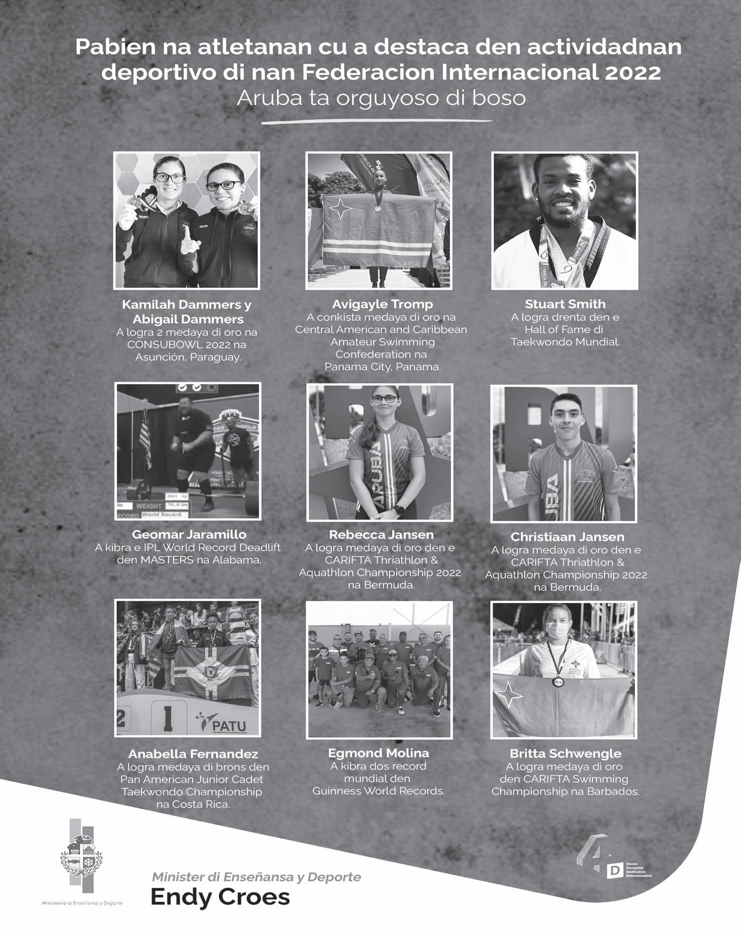 Aruba creando oportunidadnan nobo. Minister Endy Croes a enfatisa di por mira atras riba un biahe hopi exitoso den ambos aspecto tanto pa deporte pero tambe pa enseñansa unda a habri caminda pa nos studiantenan cu tin talento den deporte tambe por ricibi oportunidadnan unico.
