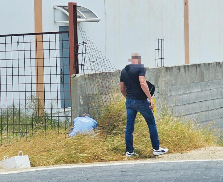 Ta asina cu e sospechoso den boei lo a trece e recherchenan, na un skina di un edificio nobo. Den e yerba nan e la sak y piki un obheto cu e lo a sconde eybou.