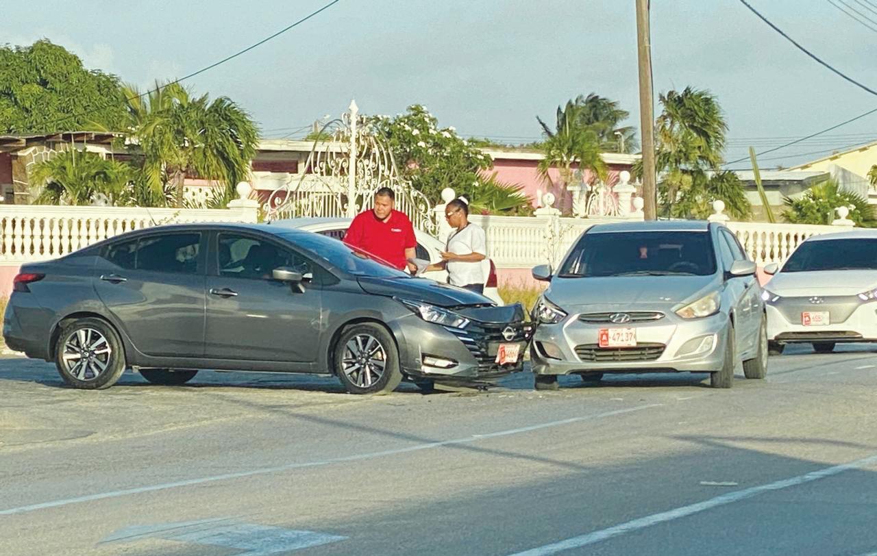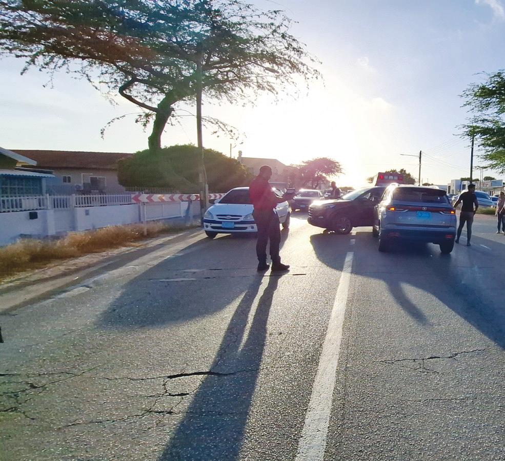 pa falta di preferencia unda e chauffeur di un Nissan biniendo for di nort a subi sali dilanti un Hyundai cu tabata tin preferencia. Afortunadamente ningun hende a resulta herida.