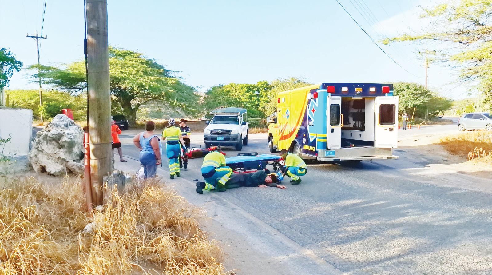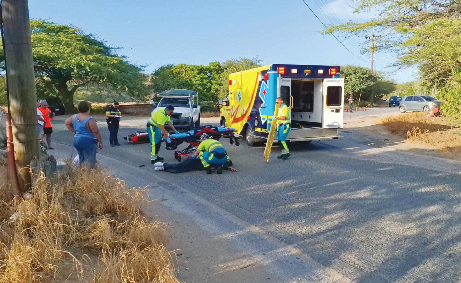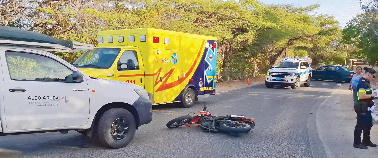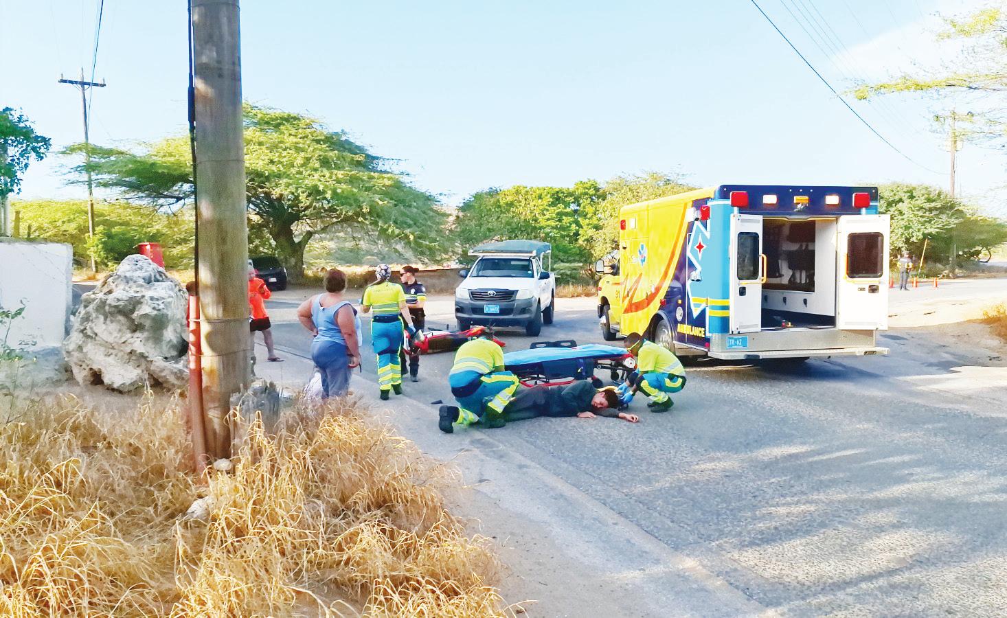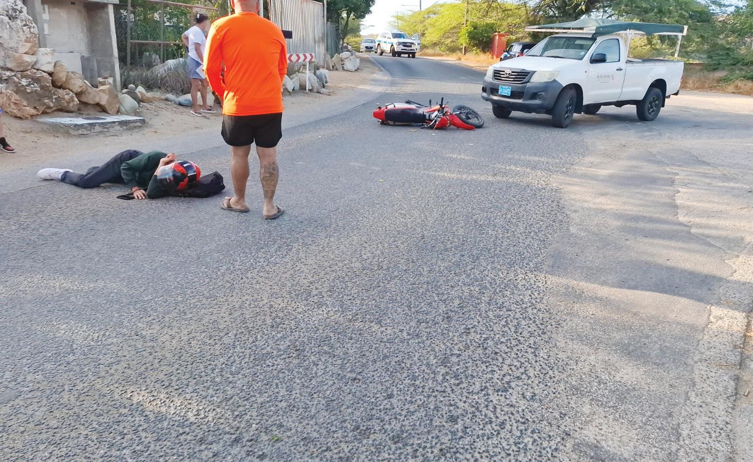 den otro y e motociclista a cay. E motociclista tabata tin hopi dolor na su pia. Na yegada di e ambulans nan aatende y transporte pa hospital.