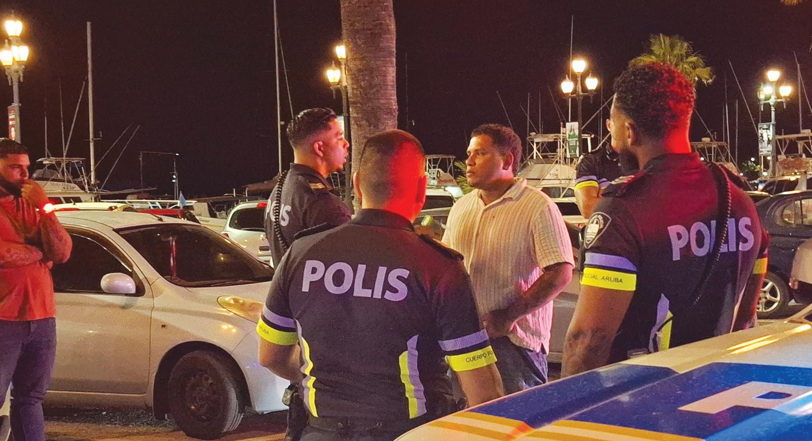Diadomingo madruga a drenta informe di cu tin un hende cu a cay na un sitio nocturno na Palm Beach, mesora a dirigi polis y ambulans na e sitio. Na yegada di e patruya a bin compronde cu e homber ta bebi y lo a cay y a herida su mes. Na yegada di e ambulans nan a atende na e sitio mes. Polis a yuda e turista dunando e un lift pa unda e ta kedando.