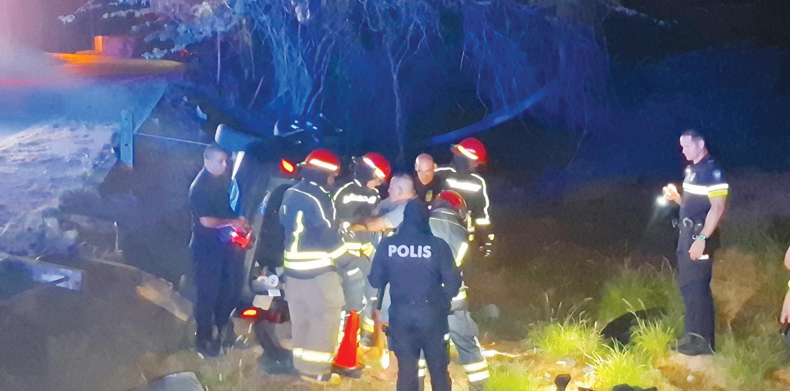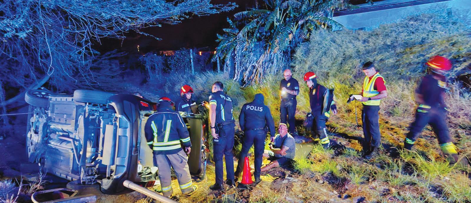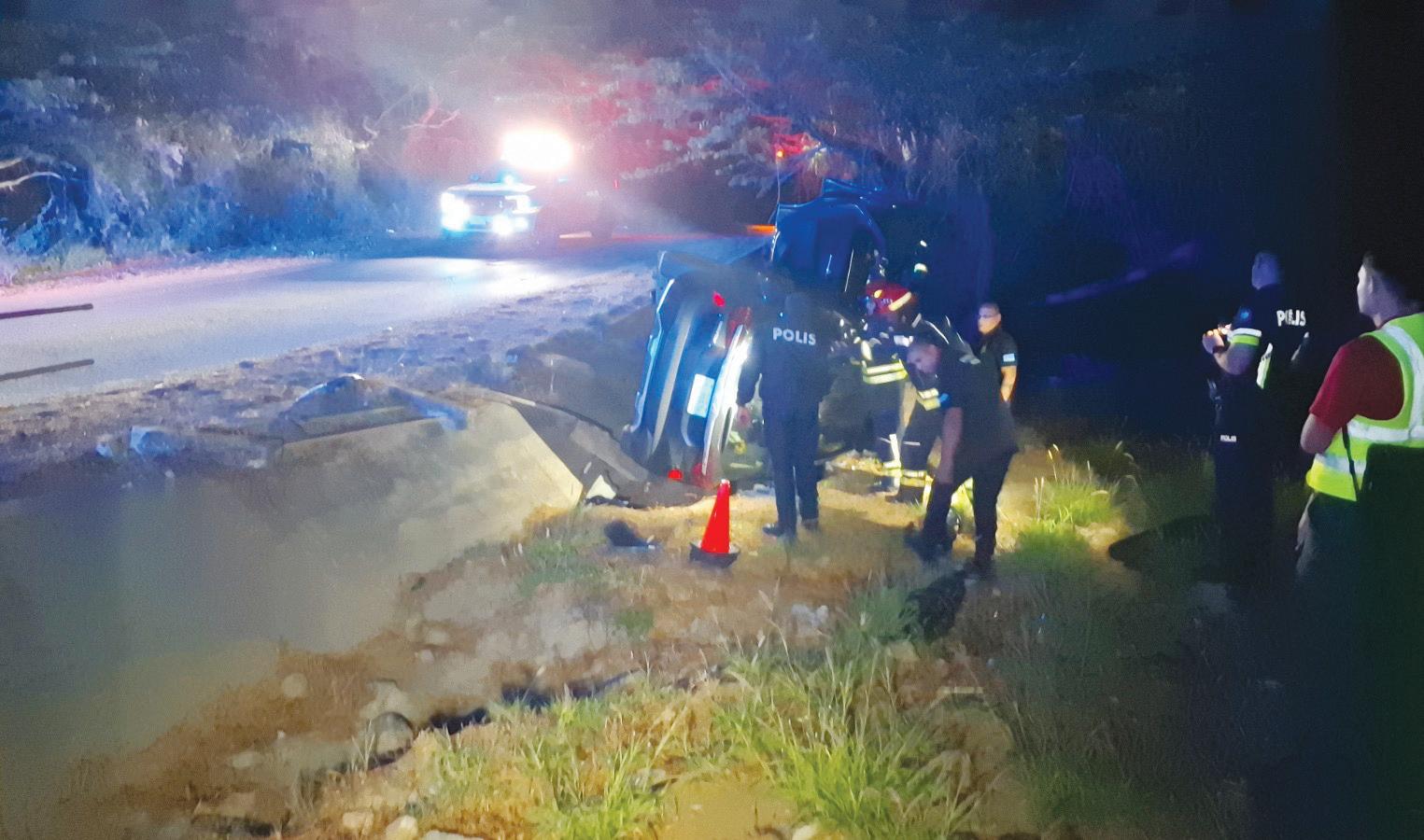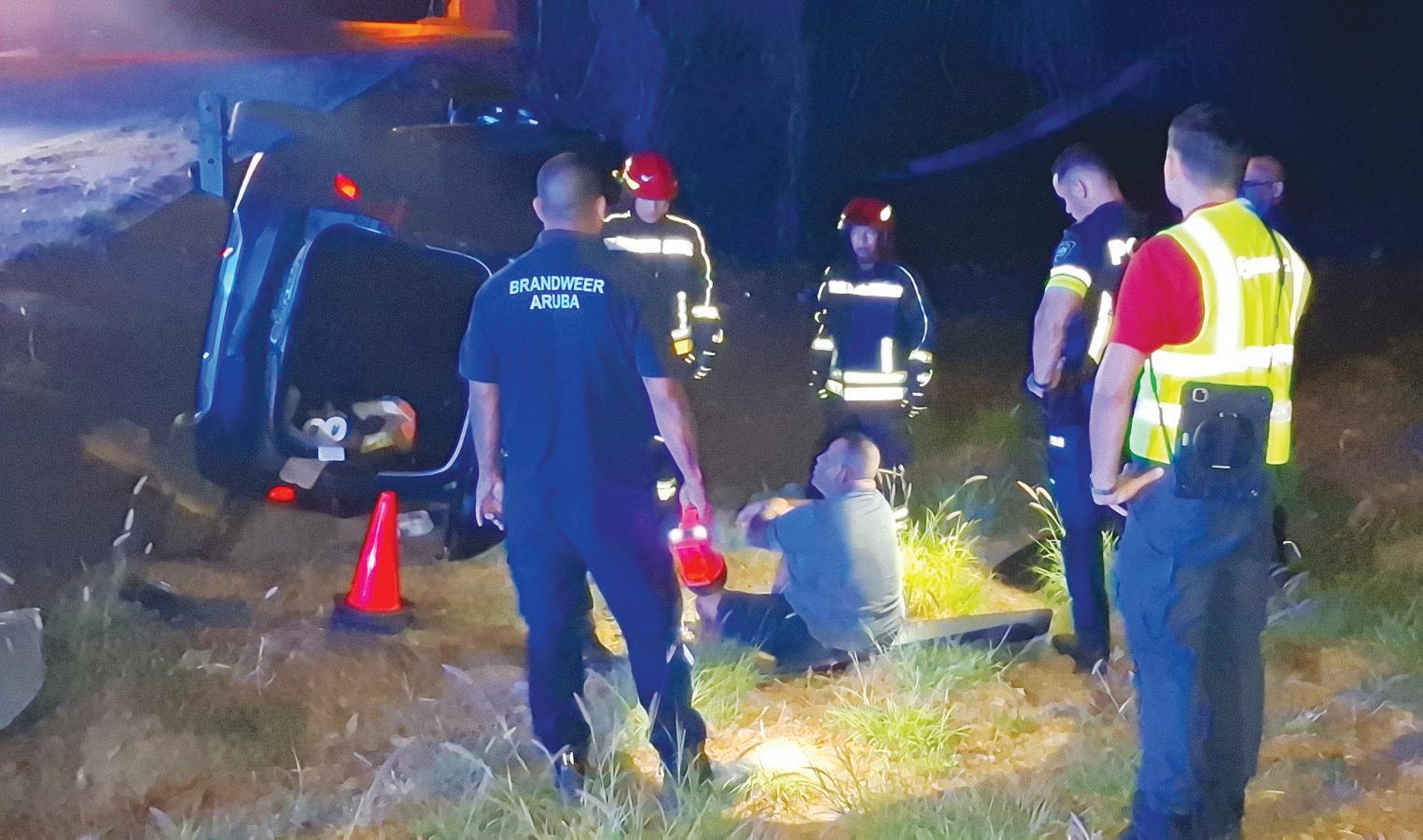 yegada di e patruya a bin compronde cu aki ta trata di un Kia Seltos cu a perde control baha caminda bay cay kentel den rooi.