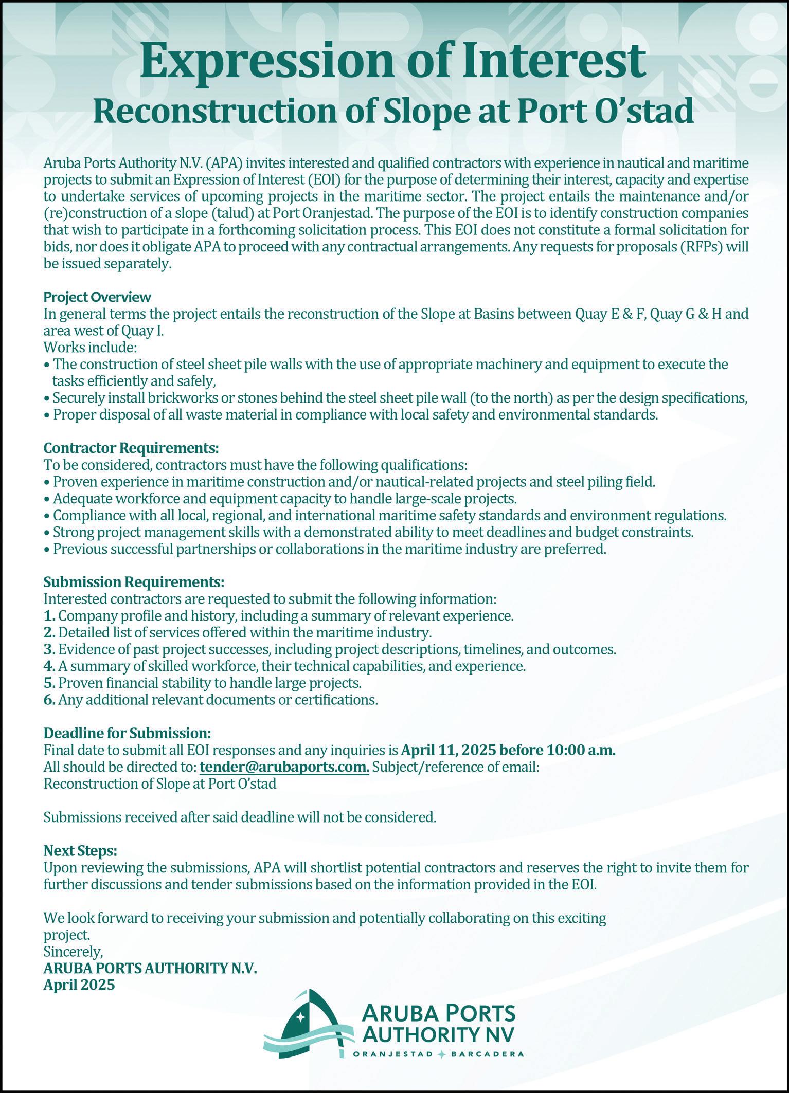 Ultimo dia pa entrega un nominacion lo ta diabierna 18 di april 2025. Por haci e entrega di nominacion via e link.