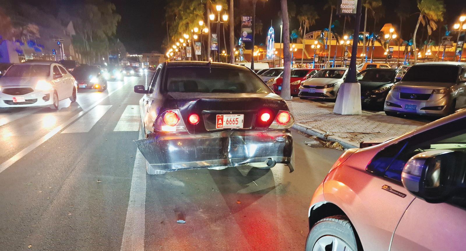 for di The Cinema's y bira bay pabao pero ela sali sin duna preferencia na e Chevrolet Spark biniendo for di pabao y a bay dal esaki aunke ela purba hala na man robes pa evita e impacto. Afortunadamente ningun hende a resulta herida.