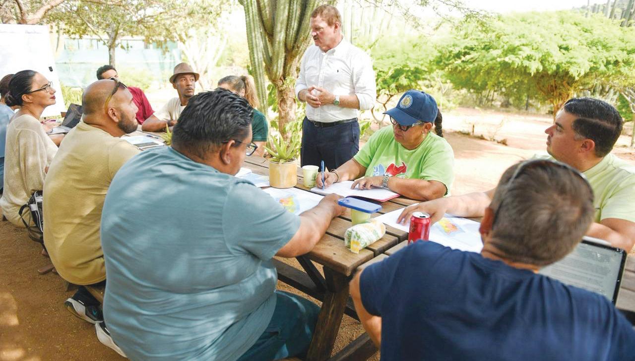 Diasabra mainta, bao di mata di tamarijn na Parke Nacional Arikok, a tuma luga un encuentro cu un grupo di organisacion no gubernametal cu a brainstrorm riba e topico di reforestacion di tanto e areanan rural como urbano. Durante e encuentro aki a pensa riba e diferente opcionnan mas eficiente pa por logra e plan ambicioso pa planta 100 mil mata durante di e siguiente 4 añanan tur rond di Aruba.