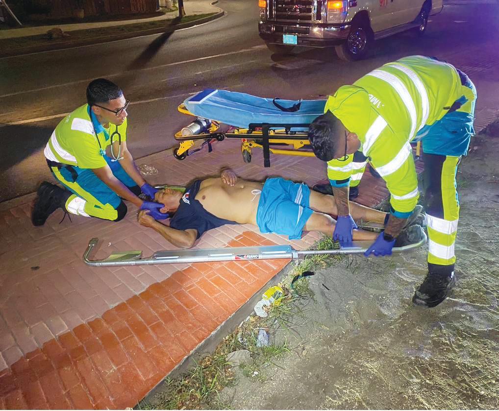 pasa riba dje. Na yegada di e ambulans nan a atende e homber y a transporte pa hospital.