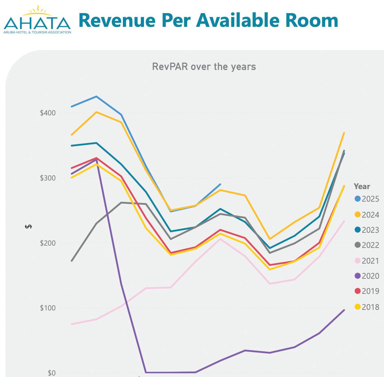 Na Juli, e RevPAR tabata $333.64 cu ta 4% mas halto cu e aña anterior.