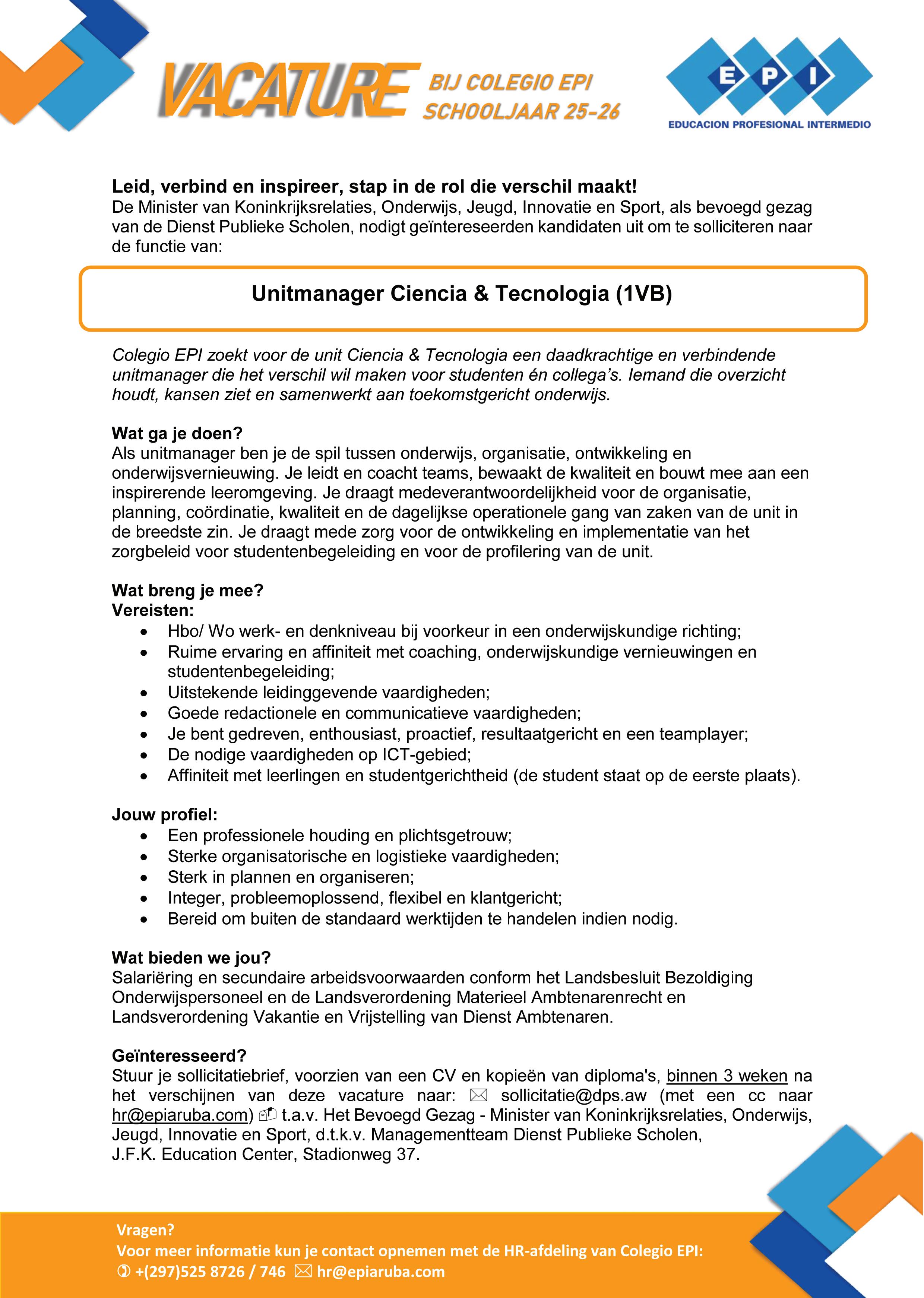 Het bestek is vanaf 21 juli 2025 verkrijgbaar bij DOW tegen betaling van Afl. 250, =
