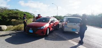 Diahuebs atardi a drenta informe di un accidente riba Sasakiweg, mesora a dirigi un patruya na e sitio. Na yegada di e patruya a bin compronde cu un chauffeur turista a bay sortia net ora cu otro auto tabata bini y a bay dal den dje. Afortunadamente ningun hende a resulta herida.