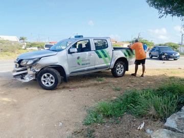cu velocidad halto y a bay dal riba e pick-up. Debi na e impacto e chauffeur di e pick-up a resulta herida y ta sinti dolor di patras di su cabes y su nek. Na yegada di e ambulans nan a atende e victima.
