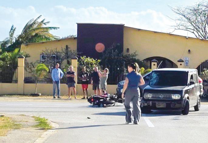 Na banda di e auto e motociclista hoben seriamente herida cu golpinan fuerte na cara y
