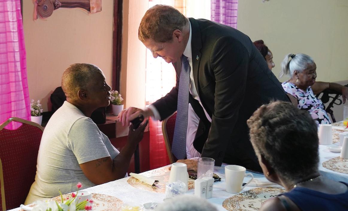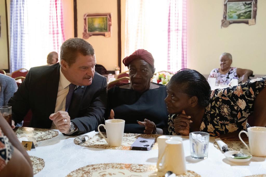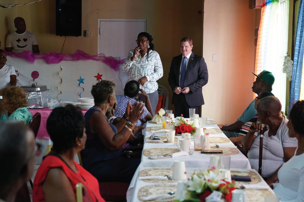 Parlamentario Otami Thomasia a acompaña Minister-President durante e bishita. E la remarca cu nos grandinan ta sinti e diferencia ora bay cumpra comestibel y paga nan recibonan di utilidad.