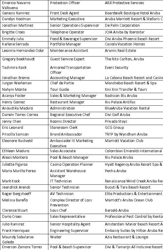 yuda negoshinan chikito y nobo drenta exitosamente den e industria turistico di Aruba.Como ganadornan di Aruba Signature