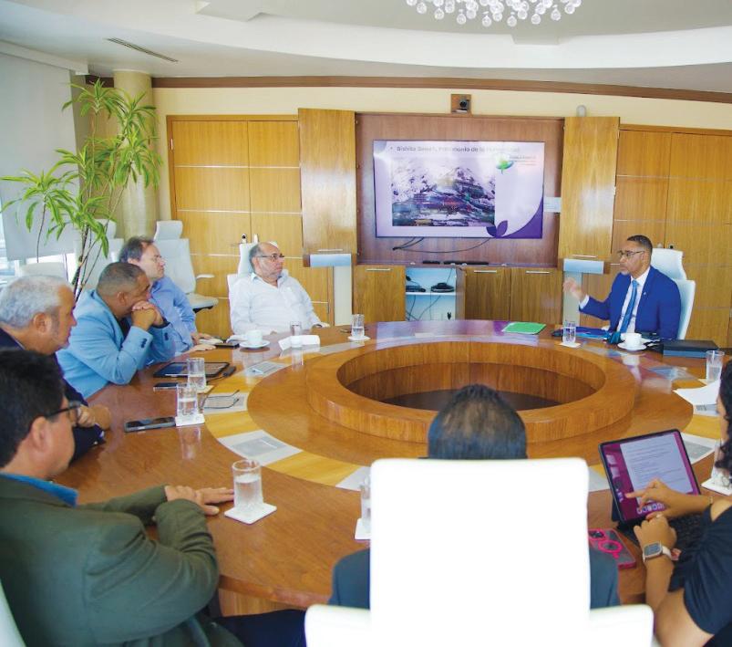 Clifford Heyliger na Primer Ministro di Aruba y directornan di e companianan principal di utilidad. E reunion tabata asisti tambe pa su coleganan di Parlamento Stephany Sevinger y Dennerich Kelly.