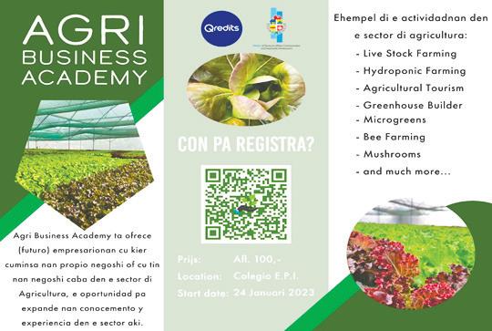 mercado local, na mesun momento e sector aki tin retonan, entre otro e habilidad pa maneha un negoshi di agricultura y pa e motibo aki gobierno a partner up pa ofrece e Agri Business Academy na e sector
