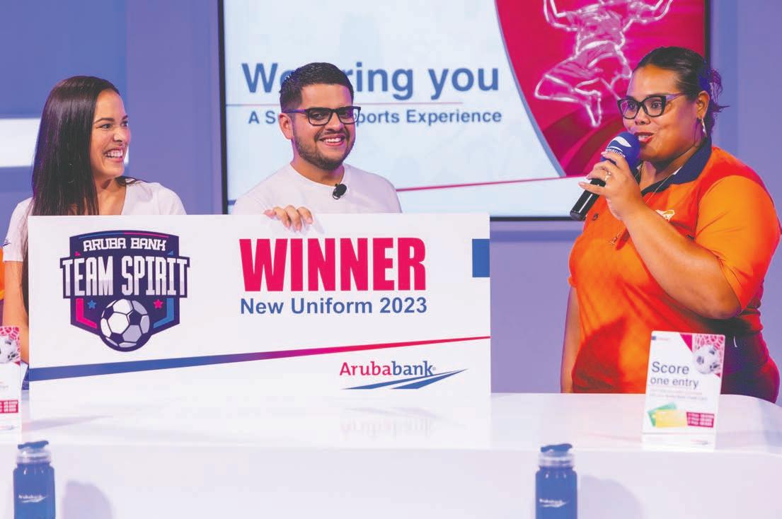 Aruba – 13 December 2022: Durante e transmision LIVE di Mundial 2022, e wega di Hulanda vs Argentina Aruba Bank a anuncia e ganador di e campaña special cu yama “Team Spirit Campaign”. E ganador di e campaña aki a resulta den Team di SV Estrella Damas.